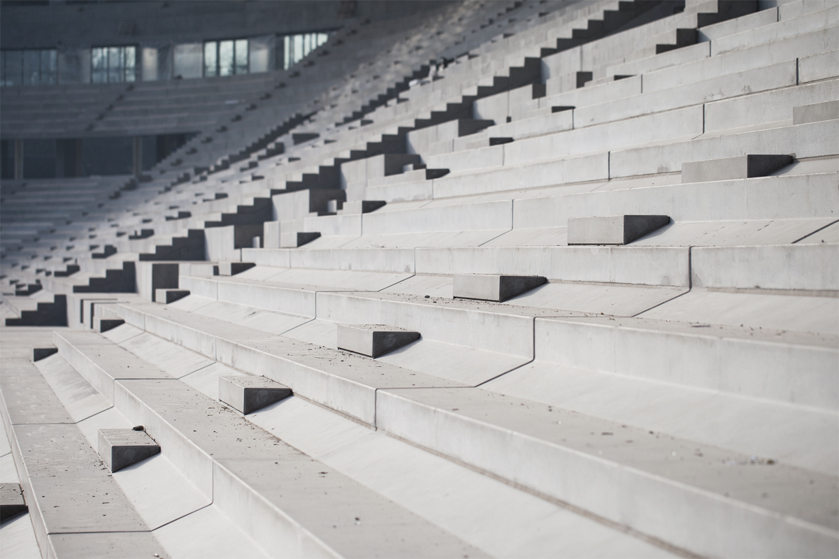 Debrecen új futballstadionját a Bord Stúdió tervezte, a stadion vasbeton szerkezetét pedig az ASA Kft. építette. A vasbeton tervek egyedi tervezést és kivitelezési megoldást tartalmaztak. Az érdekesség az ívelt lelátó elemek kialakítás volt. Ezekhez az előregyártott betonelemekhez egyedileg gyártott öntőformákra volt szükség. A Barna Architects feladata a sablonok CNC gyártási és összeszerelési terveinek elkészítése volt.